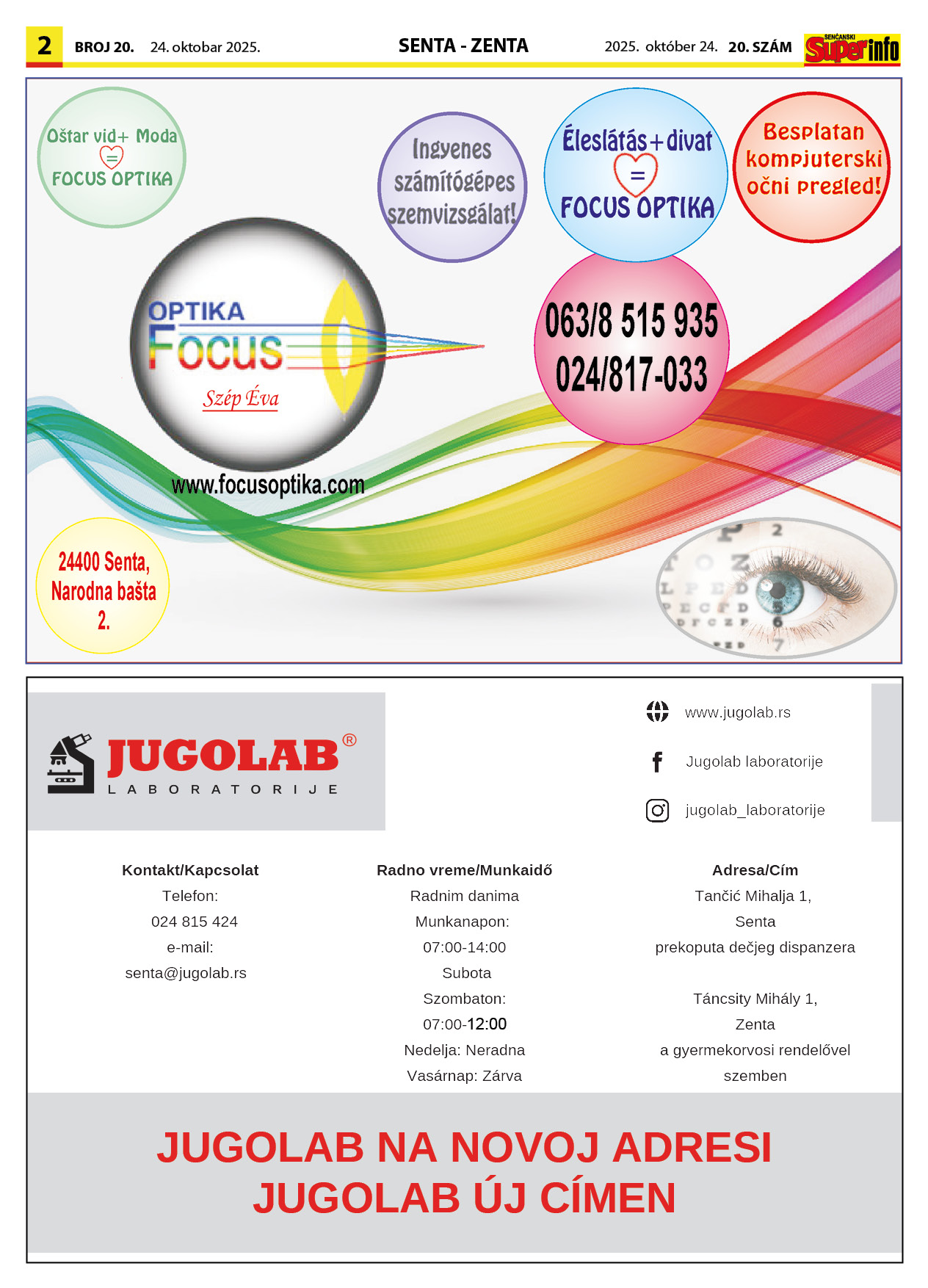 • Superinfo od sada i na internetu! Iskoristite nove, savremene metode za oglašavanje! Vaša informacija će stići do kupca i u štampanom i u elektronskom formatu. Oglasi, reklame, nekretnine, mali oglasi. Najefikasniji način da za iste pare dobijete VIŠESTRUKU i neprekidnu reklamu.