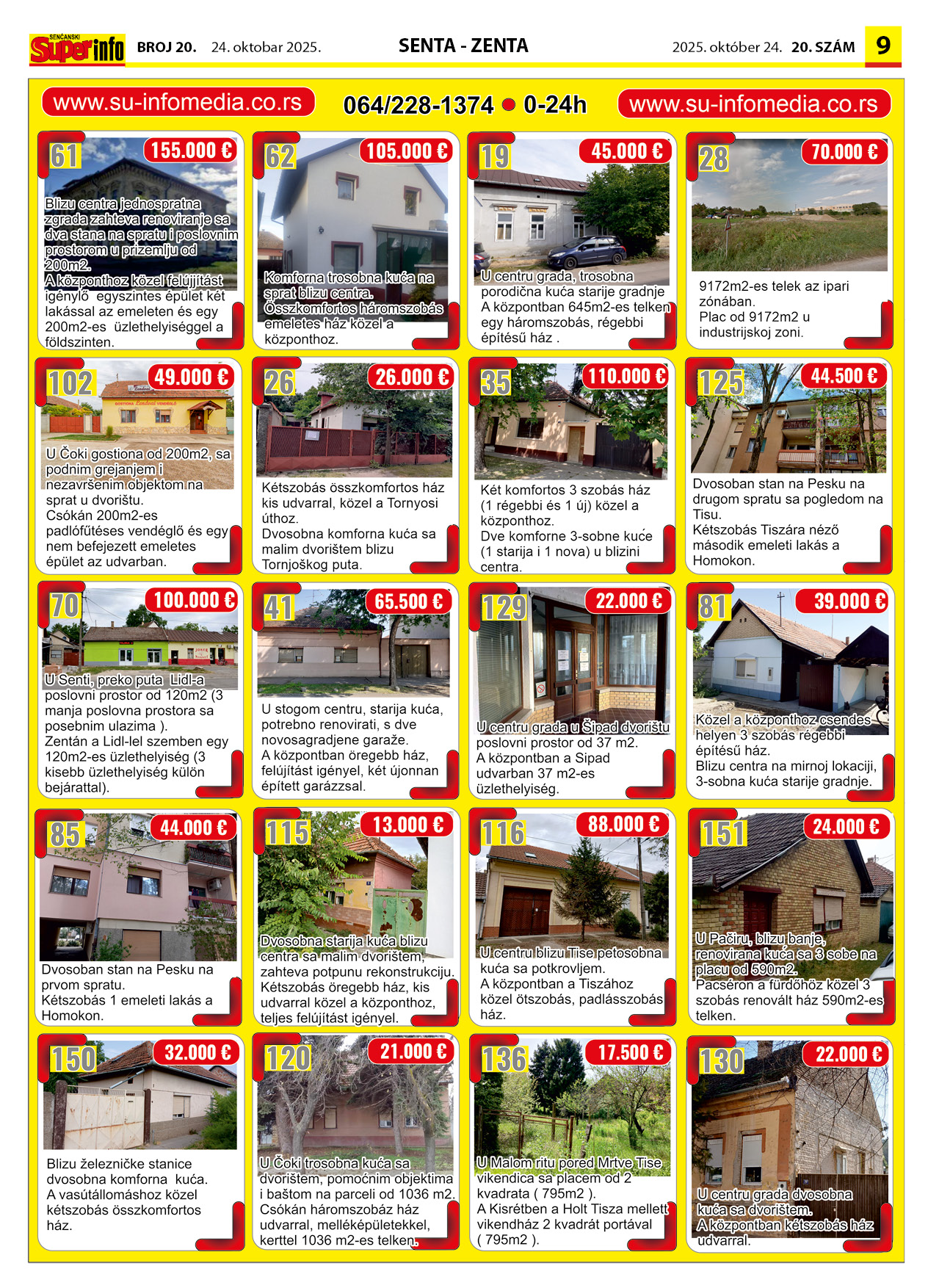 • Superinfo od sada i na internetu! Iskoristite nove, savremene metode za oglašavanje! Vaša informacija će stići do kupca i u štampanom i u elektronskom formatu. Oglasi, reklame, nekretnine, mali oglasi. Najefikasniji način da za iste pare dobijete VIŠESTRUKU i neprekidnu reklamu.